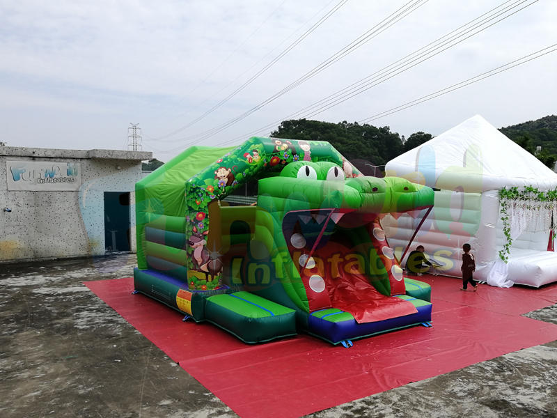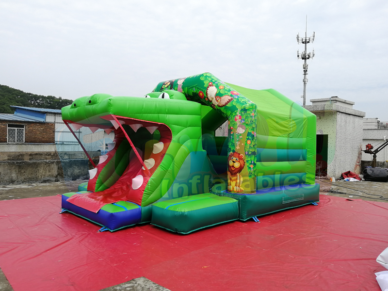 Traz um quadro padrão A para a vida. Este atraente bouncer inflável de crocodilo tem uma boca de crocodilo muito atraente como a saída de slide e dois pés grandes como as entradas à esquerda e à direita. Inteligentemente projetado para ser facilmente gerenciável para uma pessoa, o castelo insuflável infantil é uma adição maravilhosa para a frota. O que é ainda melhor, aprimoramos isso com luzes e alto-falantes de discoteca para aumentar a experiência! Também temos outros temas e formas disponíveis. Por favor, verifique nossas outras imagens ou ligue para nossa equipe de vendas para mais informações. Como a maior fabricante de produtos infláveis da Europa, garantimos que todos os produtos sejam fabricados com a mais alta qualidade, atendendo a todos os padrões europeus.
