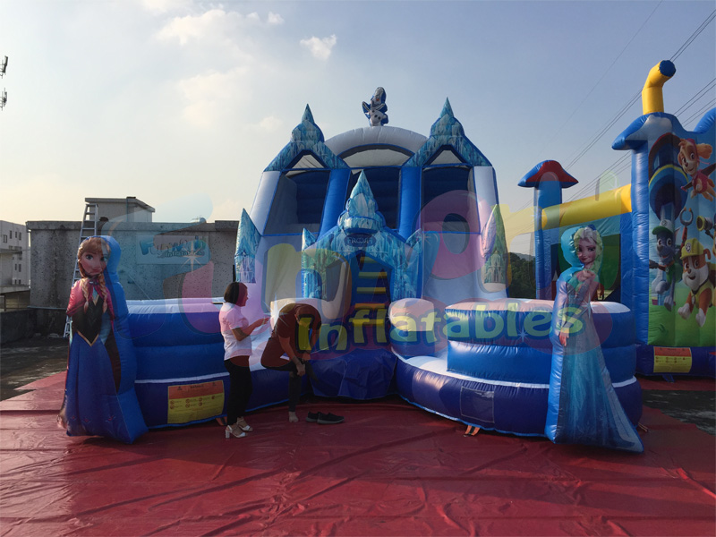 Seus personagens congelados favoritos estão esperando por você para dar uma festa mágica com este slide duplo congelado que é perfeito para entreter convidados de todas as idades. Esta impressionante venda de toboágua ao ar livre pode ser usada molhada ou seca e irá adicionar muita emoção e aceleração. Maneira perfeita para se refrescar em qualquer festa de verão!