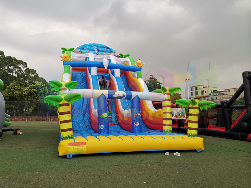 Este slide inflável tem sido uma das principais atrações do nosso catálogo há muito tempo. Por causa de suas cores marcantes e alegres, este slide certamente atrairá a atenção do seu evento. Confira todos os nossos incríveis slides!