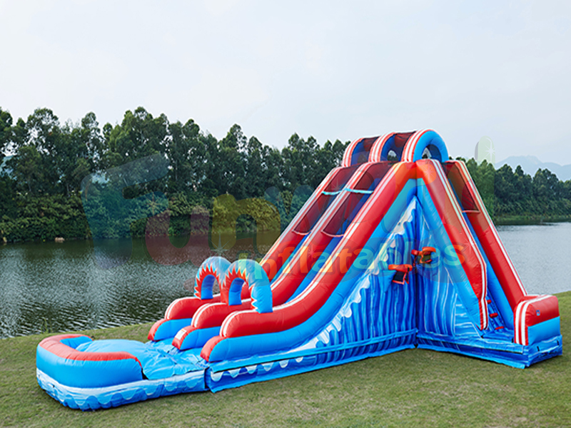 Corrediça de Água Mega Wave (com deslizamento deslizante n) O Corrediça Mega Wave é uma unidade de tempo de verão incrível. Esta pista de 2, 60 pés de comprimento, 20 pés de altura Deslize em deslizamento n Slide pode proporcionar horas de diversão para o seu evento. Depois de escorregar para baixo a lâmina de 20 pés de altura deslize mais 30 pés até terminar em uma piscina. Procurando uma maneira divertida de se refrescar neste verão. Experimente esta incrível nova adição ao slide da cidade.