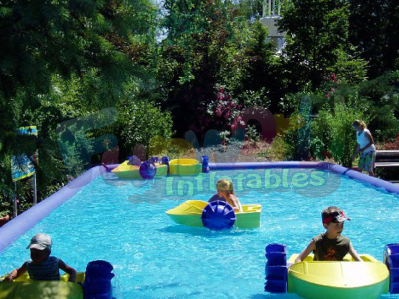 Kürekli tekneler, pervane havuzu şişme oyuncak ekipmanının her iki tarafında güç ve denge tarafından sağlanan bir su eğlencesi sağlamak için dönen darbeye dayanıklı, yüksek yoğunluklu, UV-dayanıklı PE PP işleme vardır. İnsanlar su havuzunda egzersiz yaparken sevinçlerini yaşayabilirler. Bu arada, suyla oynamaktan zevk alırsınız.