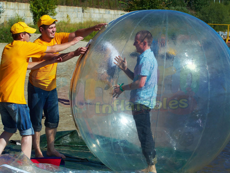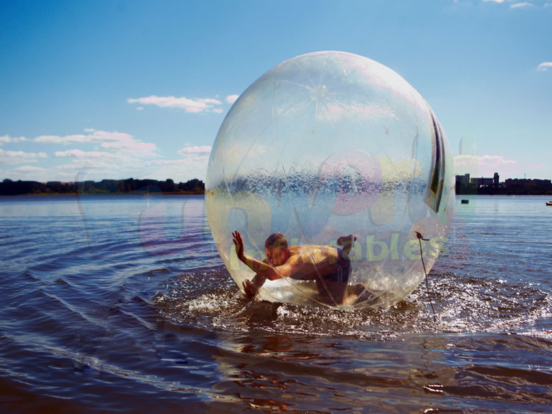 Im transparenten aufblasbaren Wasserlaufball wird eine Person platziert. Der Fußballblasenkostüm ist luftdicht, so dass der aufblasbare Wasserball zum Verkauf sowohl an Land als auch auf dem Wasser genutzt werden kann. Sie können es auch für Teambuilding-Wettbewerbe verwenden.