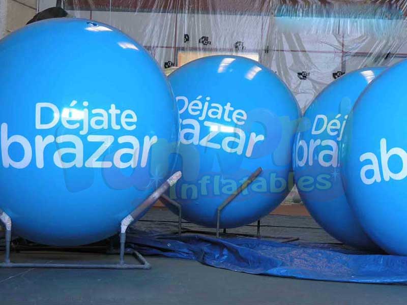 Aufblasbare Kugeln aus widerstandsfähigen und hochwertigen Materialien wie Opak mit einer großen Auswahl an Farben, sogar durchscheinend und halbtransparent mit kaltem Innenlicht. Unterschiedliche Stärken und Durchmesser unter Berücksichtigung des Zwecks und der Verwendung, die dem Luftballon oder dem aufblasbaren Ballon zur Verfügung gestellt werden. Vollfarbdruck von Bildern und Logos in hoher Auflösung.