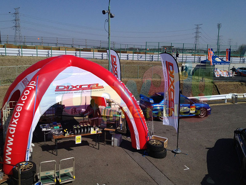 De opblaasbare spinkoepel biedt de grootste merkaanwezigheid van alle Spider Domes met volledige dye-sublimatieprint rond de volledige opblaasbare structuur en over elke centimeter van de overkapping en de wanden. De brede, uitstekende poten bieden een enorme promotionele ruimte die ideaal is voor belangrijke merkboodschappen, webadressen en grote sponsors. Met de verzegelde luchtstructuur ook snel op te zetten, is het geen verrassing om de koepel te zien op een aantal pitbanen, muziekfestivals en evenementen voor productplaatsing.