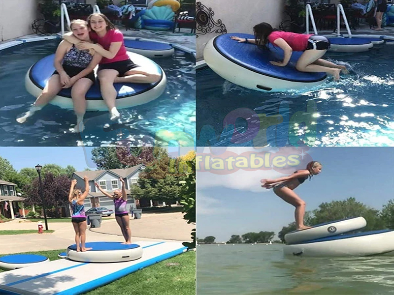 Inflatable AirSpot est une version ronde de la piste aérienne, une sorte de tapis de gymnastique gonflable, qui peut être utilisé comme tapis de saut. Grâce à sa forme ronde, AirSpot pourrait se voir proposer de grandes variations d'utilisation, assez polyvalentes. Ce serait l'occasion pour vous d'être créatif. La taille pratique de la poche gonflable signifie qu'il est facile à transporter et à utiliser en déplacement! Coutures artisanales durables. Il est idéal pour tromper, retourner, équilibrer et bien d'autres astuces de gymnastique. Ce tapis rempli d'air diminue l'impact lors de l'atterrissage, ce qui en fait une pratique sûre et amusante.