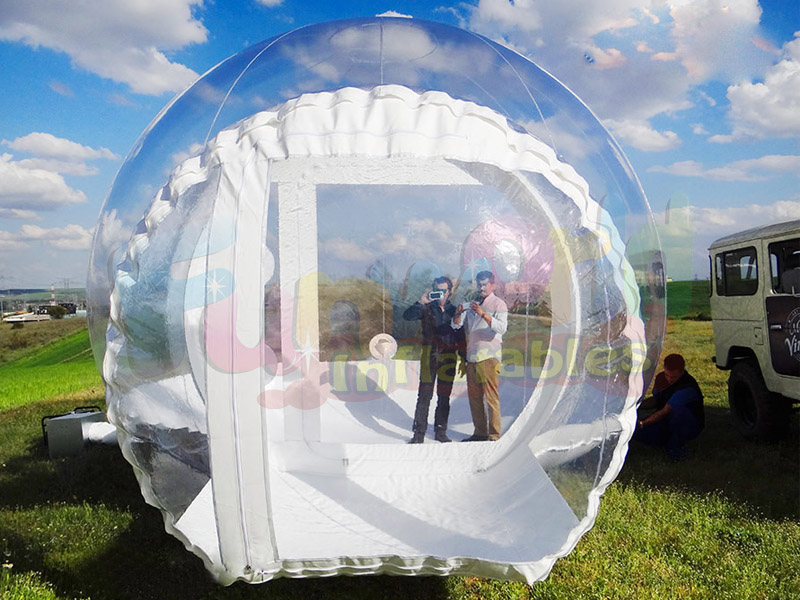 Le tende da campeggio gonfiabili sono realizzate in materiale PVC trasparente con un diametro di 5 metri. Spazio che può essere sfruttato per idee infinite che renderanno il tuo evento un'azione promozionale diversa e unica. Con questo prodotto renderai l'esperienza utente indimenticabile.