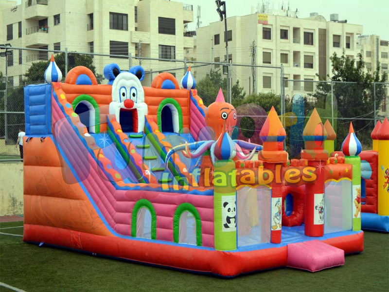 Il parco di divertimenti gonfiabile, anche chiamato campo da giuoco gonfiabile dei buttafuori, buttafuori della giungla dei bambini, è molto popolare per usando nei centri di divertimenti intorno al mondo. Puoi usarlo per la tua attività o affittarlo ad altri per fare soldi. Poiché è gonfiabile, non ha bisogno di molto spazio di archiviazione.