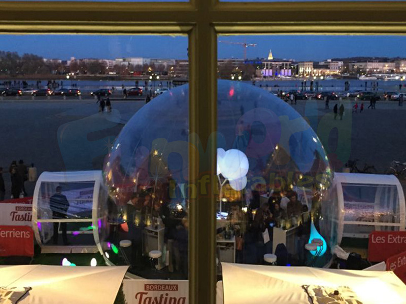 The inflatable clear bubble tent can be placed in your backyard. You can invite your friend to have a rest in your plastic inflatable spheres when you are in a barbecue or camping. the hemispheres tailored tent is beautiful and practical.