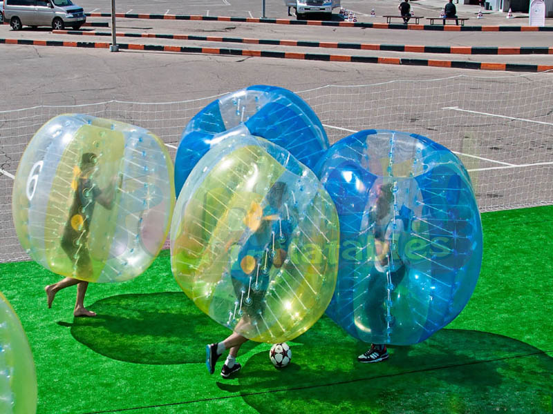 This is our bumper soccer ball. The inflatable bubble soccer suits is suitable for family gatherings, picnic, birthday parties, barbecue, on the beach, in the park, or in own backyard. It could make fun when you play with bubble ball pour le football with your friends or parents. And you'll fell like a bull when you put it on and don't worry about hurting yourself. So many people will choose to purchase it rather than renting expensive sumo suits.
