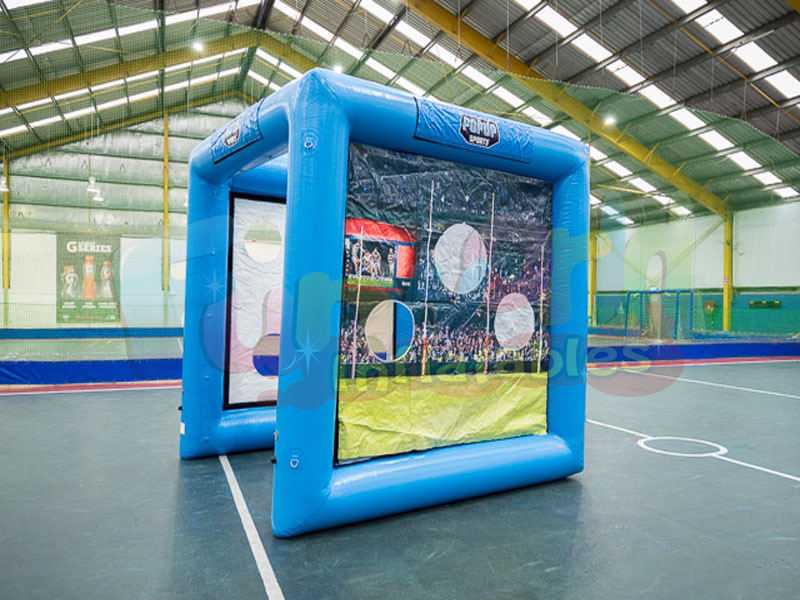 Our interactive inflatable sports game can be adapted for AFL Footy, Cricket, Soccer, Netball, Basketball, Rugby or multi disciplined themed events. We aim to make booking events with us a simple as possible, where to buy foot darts or can help source one for you. From major activations, sporting club fundraisers or birthday parties we can cater for all needs and budgets.Game Cube inflatable tests the skills of the participants with all three sides in action at once. Includes Handball Targets, Kicking Targets and Dartboard Game.