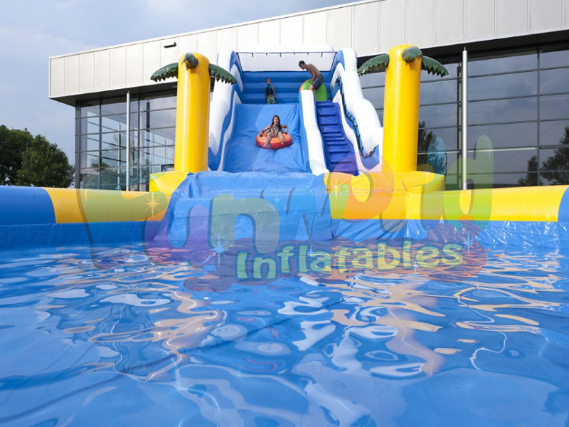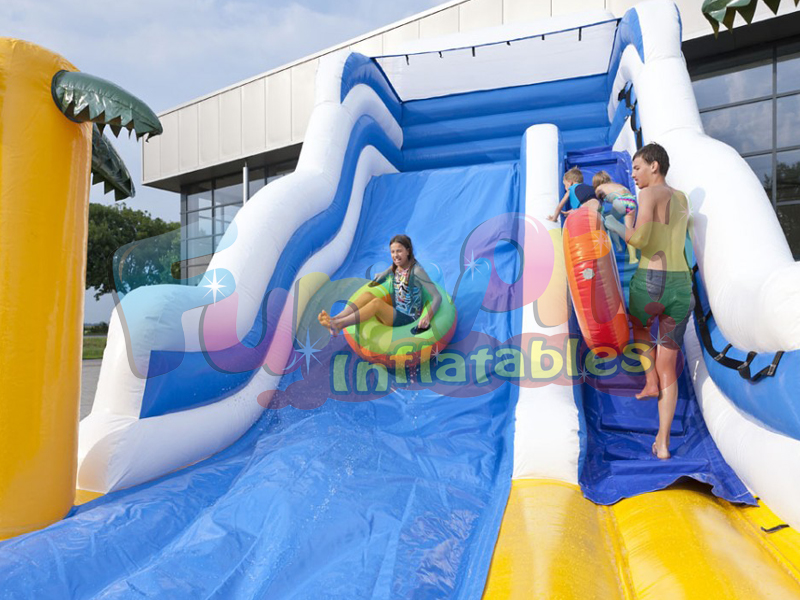 The commercial inflatable water slides are quite welcomed by many children and adults in summer. Many people prefer have fun on the water amusement park equipment to dipping in the pool.