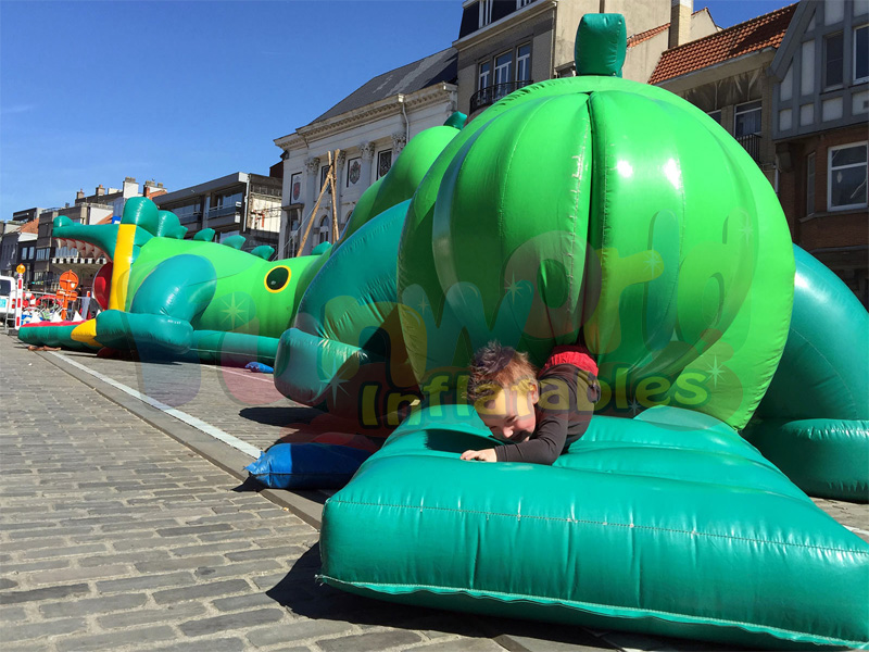 This magnificent Inflatable caterpillar obstacle course provides over 18m of inflatable fun and entertainment that’s a huge hit with the kids. This giant inflatable games features lots of travel-through adventure including a large slide, giant teeth, biffers and baffers and more!obstacle cours
