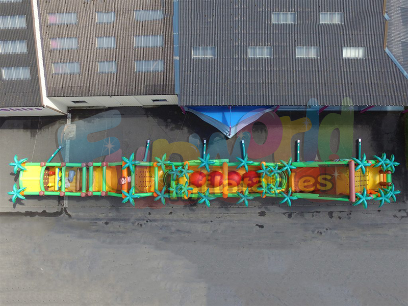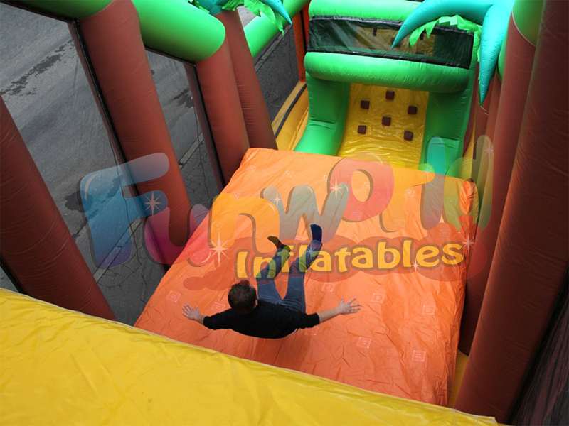 The bounce house obstacle course for sale run is a fun and challenging obstacle course covered in the jungle theme. Jungle adventure run can be installed as a single component