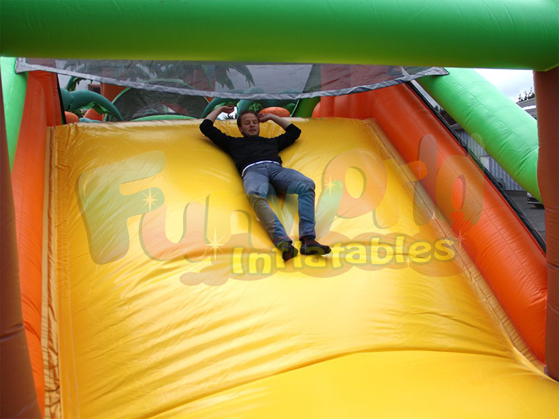 Climb the slope up to the height of the slide and then alone or in pairs to slide down into the amazingly fun obstacle area. Once down, there are several obstacles that must be overcome in order to reach the end of the inflatable. Turn it into a competition and see who can finish this ocstacle course the fastest and call himself the winner!
