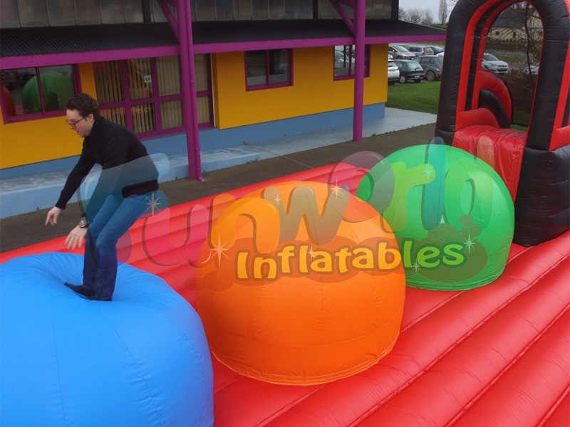 Ready for some crazy wipeout action well here it is with our new Inflatable Ball Jump! Just like on the popular gameshow contestants try and jump from ball to ball and get to the other side without wiping out and falling down to the inflatable deck below. do you have what it takes to make it all the way across for sale local party rentals