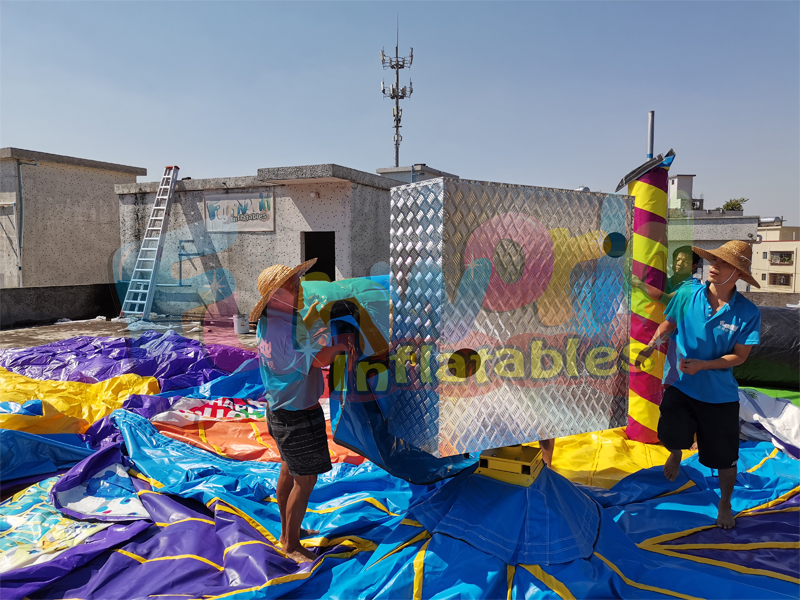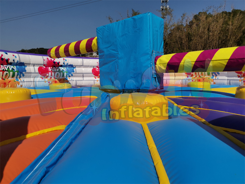 Meltdown is our wild 8 player action game which challenges your stamina, agility and reactions. Not one but two spinning boom arms try to knock you off your podium. You have to duck underneath or jump over the foam boom. This inflatable meltdown for sale is best fun for kids.