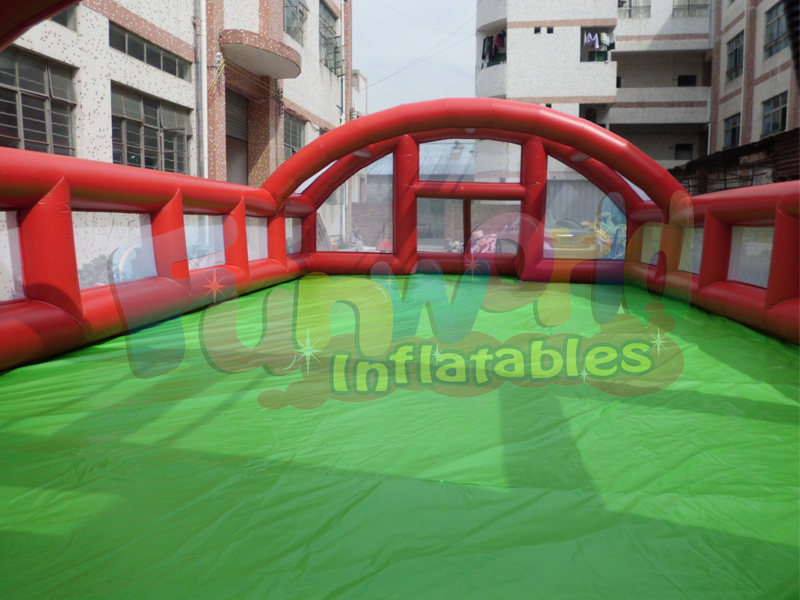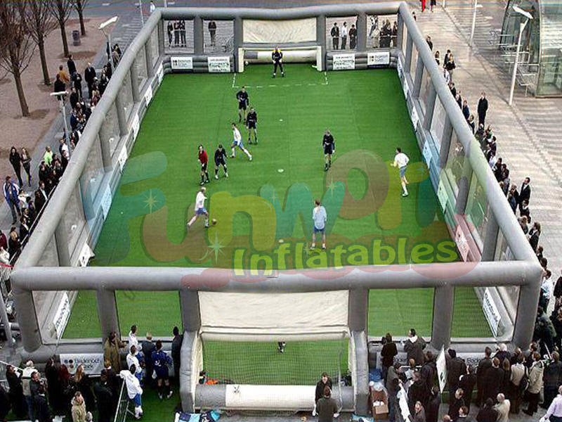 ملعب كرة القدم قابل للنفخ هو ملعب كرة قدم قابل للنفخ مع حصيرة قابلة للإزالة. وعلاوة على ذلك ، يتم إرفاق حصيرة مع الفيلكرو. هذا لأن القاع يمكن إزالته يستخدم في مسار الصابون. علاوة على ذلك ، فإن حوائط الساحة مثالية وتسمح للاعبين برد كرة القدم من فوقهم.