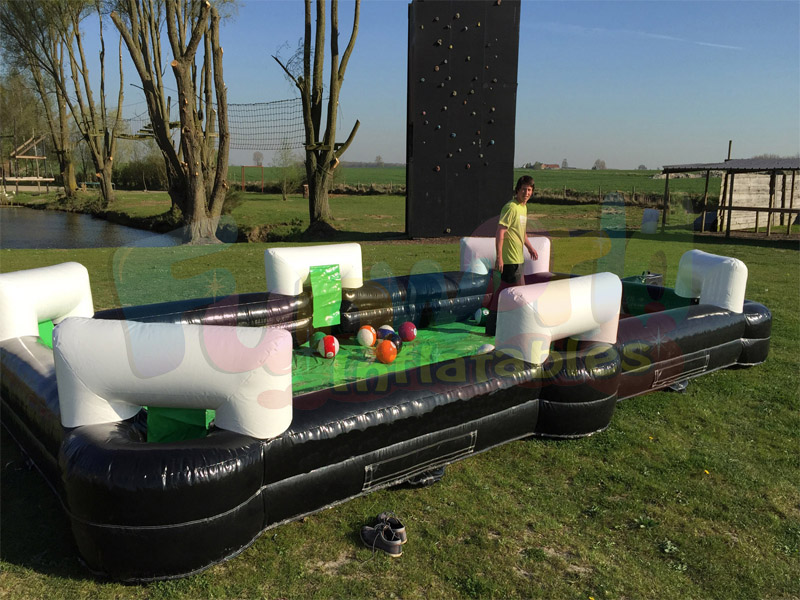 لعبة تفاعلية فريدة من نوعها حيث يمكنك الجمع بين حب كرة القدم مع لعبة البلياردو. تلعب هذه اللعبة التفاعلية مع كرات البلياردو الكبيرة التي تضخم حجم كرة القدم. الهدف من اللعبة هو استخدام قدميك بدلا من عصا تجمع لضرب الكرة جديلة وكرات في واحدة من جيوب تماما مثل لعبة كرة القدم من كرة القدم وكرة القدم هذه هي لعبة تفاعلية مثيرة وسريعة التي من المؤكد أن تجذب الكثير من الناس يمكنك لعب هذه اللعبة باعتبارها 1 مقابل 1 أو 2 مقابل 2 أو 4 مقابل 4 لاعب لقد رأينا خطوطًا حول هذه اللعبة في العديد من الأحداث بسبب تصميمها الفريد وواحد من نوعه هذا التصميم يدعى أيضًا طاولات البلياردو للنفخ