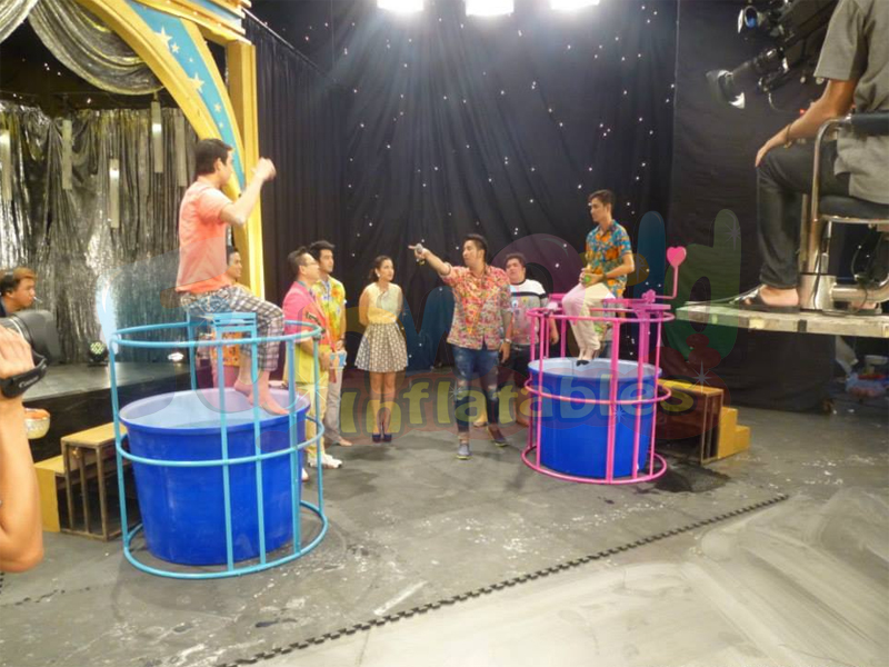 دبابات دونك هي لعبة مهارة جزء واحد ، لعبة تفاعلية جزء واحد. قد يسخر الشخص الموجود في الخزان بشكل مرح من قيام الشخص بإلقاء كرات ناعمة على الهدف. لا تدع الوقوف على المقعد يصبح جزءًا من السخرية. تسقط هذه المقاعد مباشرة من تحت الناس ، وتلقيها في خزان المياه. إذا سمحت للناس بالوقوف على المقعد ، يمكنهم التقدم إلى الأمام وضرب رؤوسهم على حافة الخزان ، مما يخلق خطر الغرق إذا ضربوا أنفسهم فاقدًا للوعي. لا تسمح لأي شخص بالوقوف على المقعد.