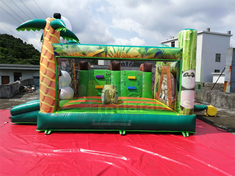 الباندا نفخ نطاط القلعة واو! العب مع "الكنز الوطني" للصين الباندا العملاقة. تتميز هذه الشريحة الهائلة بأم باندا المحببة في أعماق غابة الخيزران التي تشاهد على طفلها الصغير شبل على كوخ كذاب يوفر منطقة ترتد مثيرة مع ميزة إضافية لحركة ديبوت الحصرية جنبًا إلى جنب. ستضفي هذه الشريحة الرائعة من فنتاز كيدز على شكل الباندا اهتمامًا لا مثيل له في السوق. وهناك موضوع واضح للغاية وآمنة من شأنها أن تجذب الجميع. الاطفال يحبون هذا الباندا موضوع نفخ ألعاب كذاب للمتعة