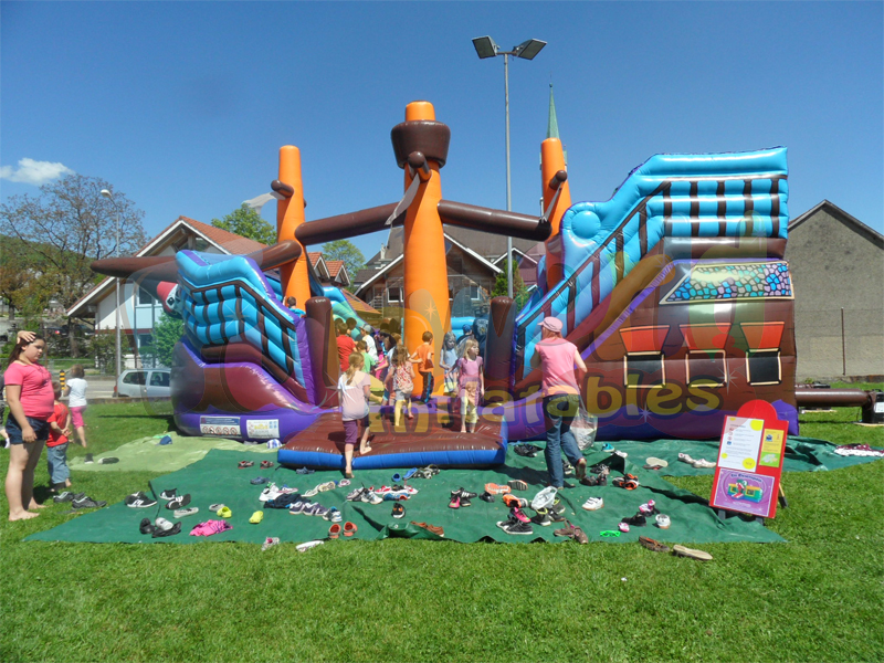 العلامة التجارية الجديدة 2018 نفخ القراصنة السفينة! الحصول على استعداد لركوب هذا القراصنة السفينة الملونة وممتعة! تسلق وترتد حولها قبل اطلاق النار على بعض الأطواق وتسلق وأخذ الشريحة إلى أسفل! الصغار لديهم الكثير من المرح مع هذا واحد! سفينة القراصنة المرح هو قلعة نفخ شعبية جدا التي تحظى بشعبية في كل حدث! يعد القارب مثاليًا للمناسبات الكبيرة مثل المدارس أو المهرجانات الريفية أو فعاليات الشركات أو المعارض. الشرائح والعقبات المختلفة تضمن أقصى قدر من المتعة عند القفز للحصول على أكثر متعة!