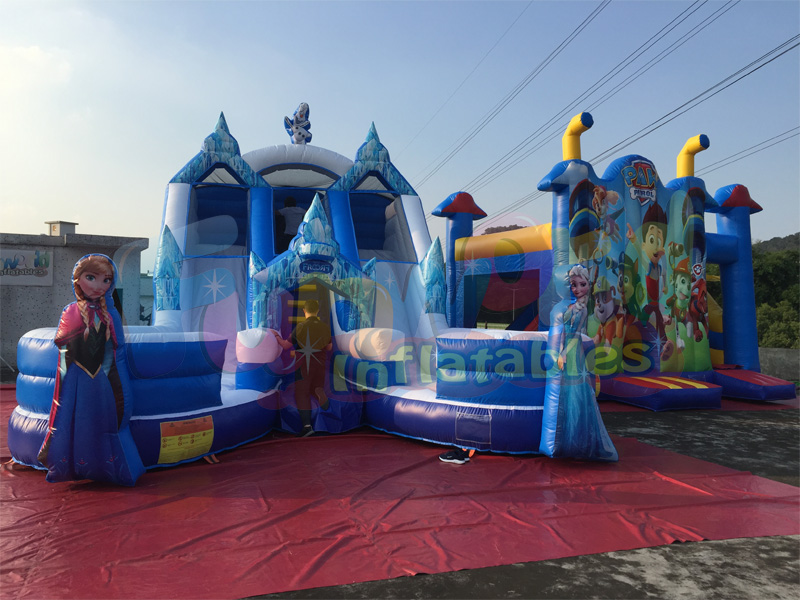 Seus personagens congelados favoritos estão esperando por você para dar uma festa mágica com este slide duplo congelado que é perfeito para entreter convidados de todas as idades. Esta impressionante venda de toboágua ao ar livre pode ser usada molhada ou seca e irá adicionar muita emoção e aceleração. Maneira perfeita para se refrescar em qualquer festa de verão!