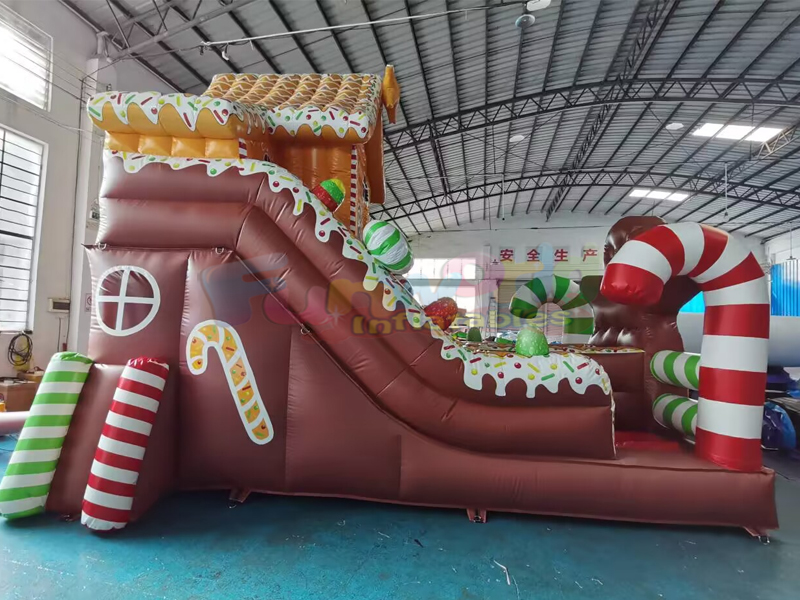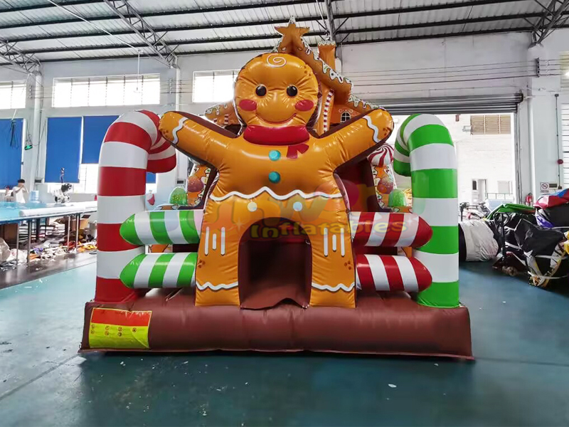 É hora da festa! Este escorregador de casa de gengibre é emocionante e é hora de pular e escorregar! Este jogo combinado inflável é divertido e atraente. Além disso, o tema da festa pode ser encontrado dentro e ao redor do castelo inflável. Desenhos infláveis de alta qualidade com impressão digital fina, o design e o estilo podem ser personalizados de acordo com suas necessidades."
