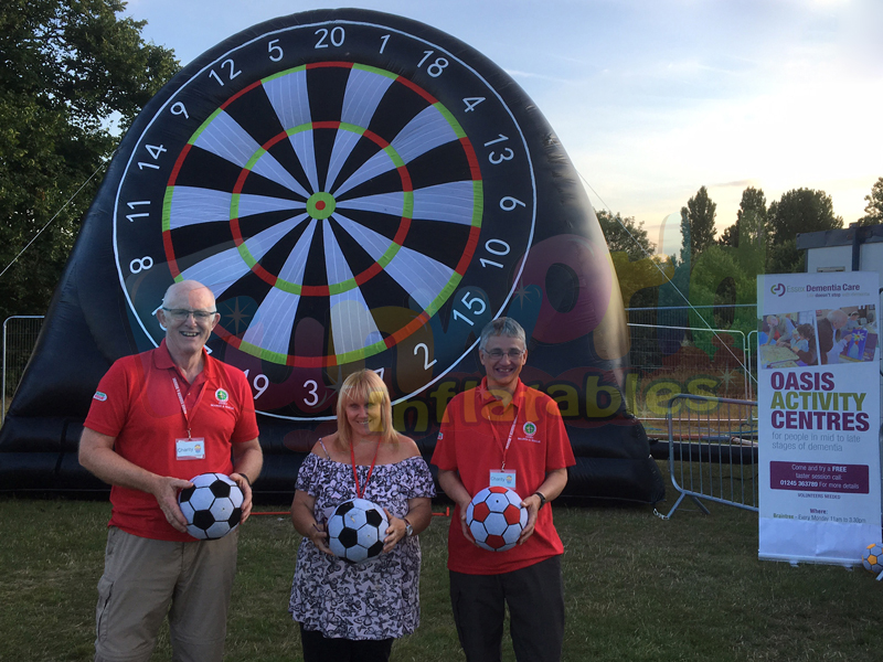 All of our giant inflatable dartboard are flame retardant and water resistant. Standard print or pantone specific plus we can add interchangeable Velcro panels.