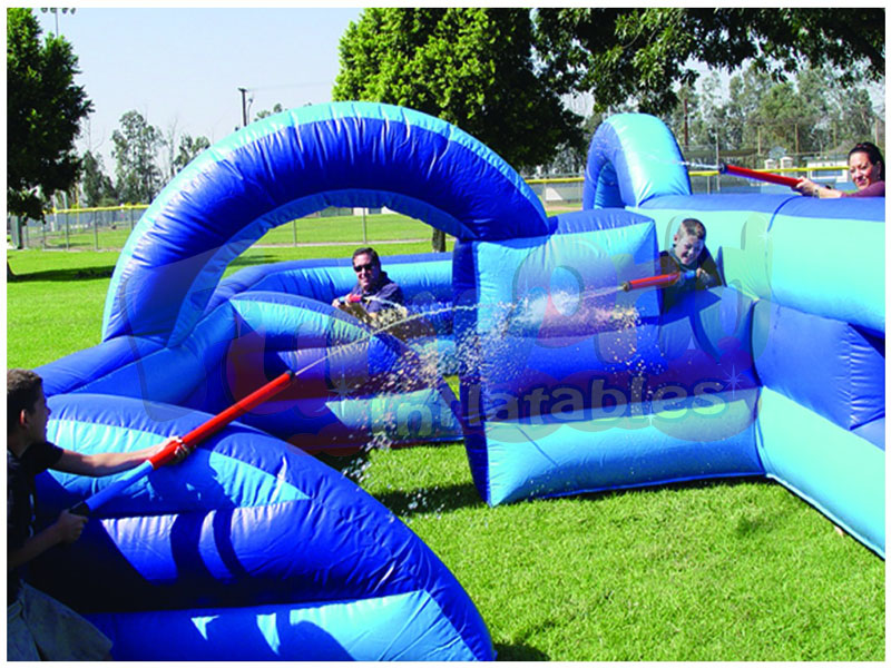 Un divertido y emocionante juego de agua para agregar a cualquier picnic de la empresa o fiesta en el patio trasero. Los jugadores usan máquinas de transmisión para tratar de empapar a otros en la arena de la etiqueta láser inflable y mojarlos. Hasta 8 jugadores a la vez entran en el laberinto inflable embrujado para la venta, ya sea como individuos o en equipos. Buena diversión para personas de todas las edades.