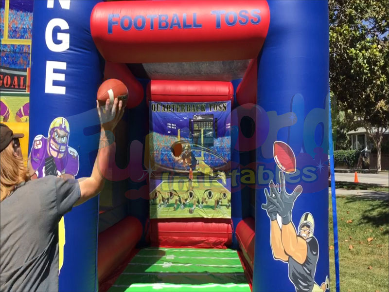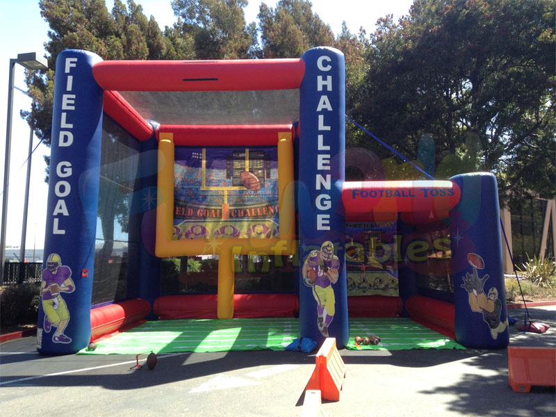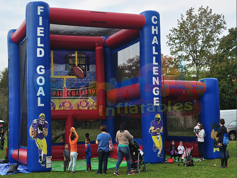 ¡Será mejor que estés preparado para un poco de fútbol con nuestro desafío inflable de gol de campo! Nuestro desafío de gol de campo inflable tiene una publicación de objetivo en un lado y un área de lanzamiento de mariscal de campo en el otro. Ahora puedes practicar tanto el despeje como el pase en el mismo inflable. ¡Ningún otro inflable permite tanto punting como pasar en el mismo inflable!