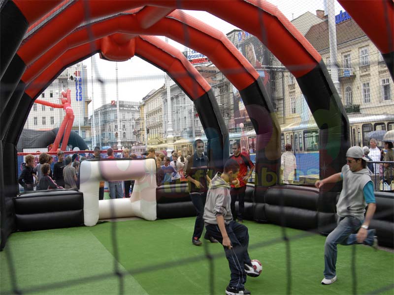 Football jam es un campo de fútbol inflable donde jugar partidas interminables a velocidad súper rápida. La jaula inflable, es fácil de transportar y muy segura para administrar partidos de fútbol, torneos y diferentes juegos. El inflable de fútbol "football-jam" está disponible para alquilar. También podemos producir diferentes campos de fútbol inflables para eventos.