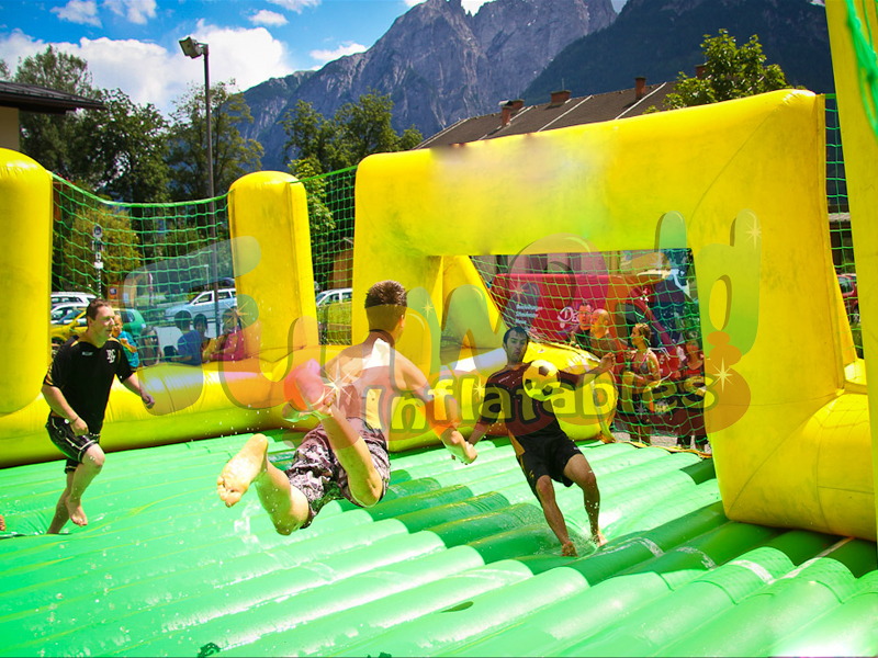 Toda la diversión y el desafío del popular campo de fútbol en venta ahora se ha convertido en una actividad inflable, divertida y de tamaño natural. Un montón de diversión para jugar y ver, este juego es muy interactivo y requiere un mínimo de habilidad, para divertirse y es ideal para eventos corporativos y ejercicios de formación de equipos.