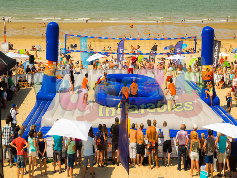 Puedes jugar Bossaball tanto en exteriores como en interiores, la cancha de bossaball inflable se puede colocar en todo tipo de superficies y se puede jugar en 45 minutos.