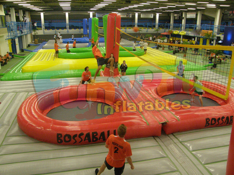 Bossaball es un deporte dinámico y nuevo espectacular que combina lo mejor del fútbol, el voleibol y la gimnasia en un campo de juego inflable de voleibol