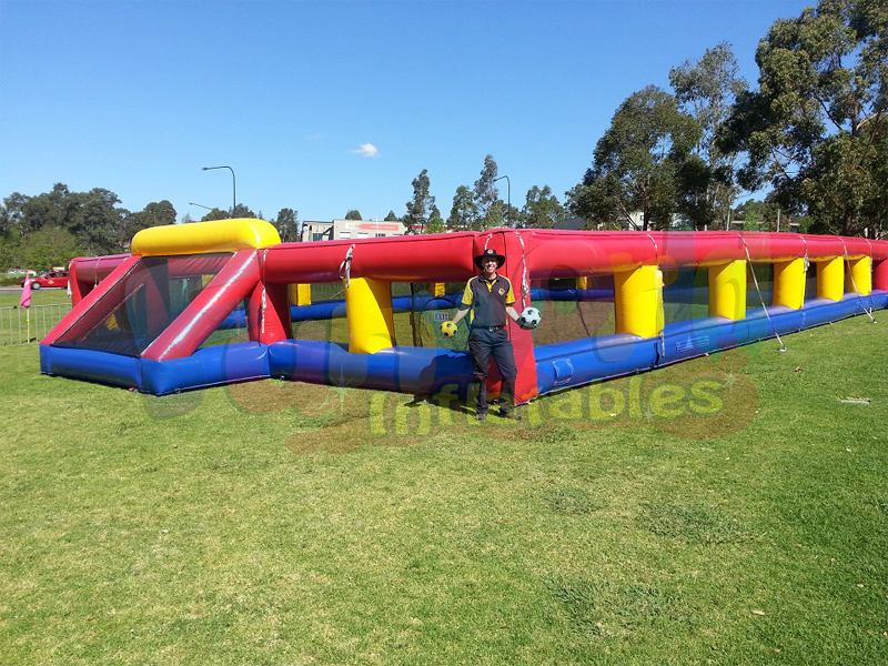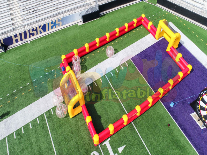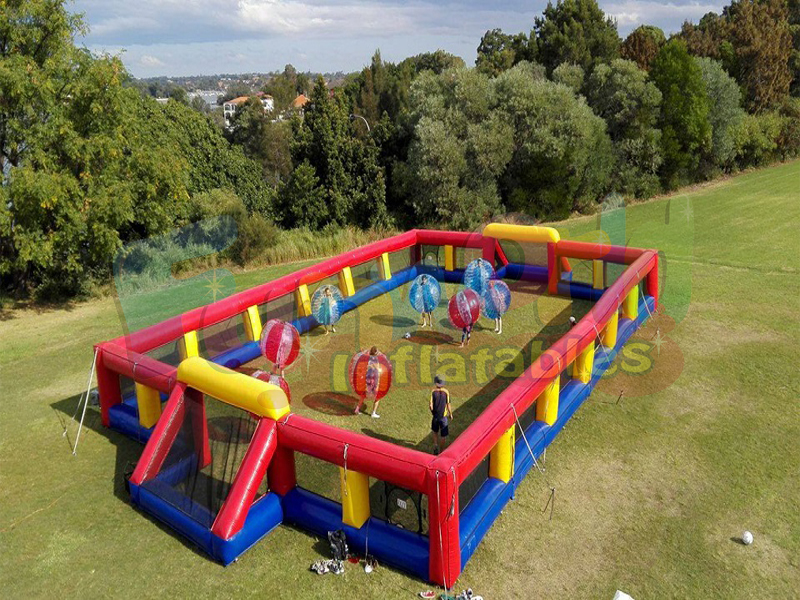 ¡Con 36 pies de ancho y 52 pies de largo, la arena crea un ambiente seguro y controlado donde 6-8 jugadores de Bumper Ball pueden competir en enfrentamientos de fútbol de burbujas!