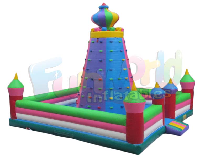 La escalada hace que el tiempo de juego en inflables sea aún más divertido. Esta pared inflable de escalada puede acomodar hasta 4 niños mientras intentan escalar y competir entre sí. El trepador más rápido a la cima será aclamado y premiado por todos los demás porque este inflable juego de rock está lleno de energía y acción. Esta montaña inflable se puede fabricar con ciertos colores de su elección.