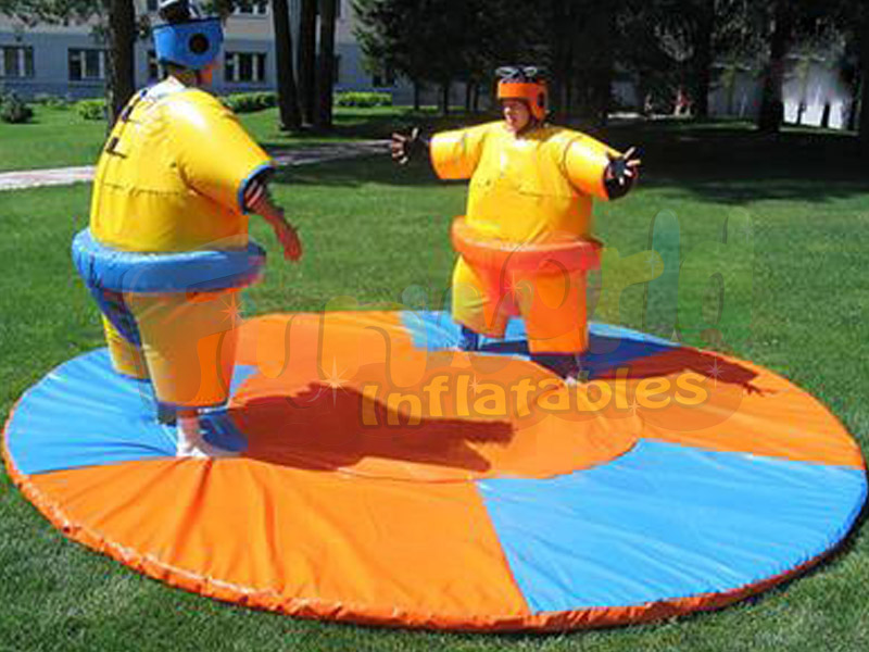 Estos trajes de sumo son un gran entretenimiento en cualquier fiesta y muy populares. El objetivo del juego es empujar (¡o tirar!) Al otro participante fuera del ring. Los trajes rellenos de espuma le dan el aspecto de unos trajes de lucha de sumo acolchados con espuma gigante y brindan una mayor protección hinchable para permitir que los participantes salgan volando entre sí fuera del ring.