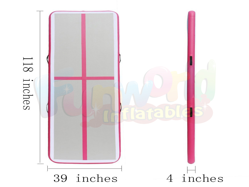 Nuestra alfombra de gimnasia inflable está hecha de tela laminada de PVC de alta calidad. Es hermético a los gases y duradero. Nuestras alfombras de gimnasia de pista de caída pueden plegarse y desplegarse rápidamente. Comparado con el tapete tradicional a base de espuma, ocupa menos espacio después de desinflarse. El almacenamiento y el transporte se vuelven bastante simples y económicos. Puedes llevar la colchoneta a tu oficina, al gimnasio, al parque, etc. Sólo se tarda varios minutos en inflarse o desinflarse con la bomba manual.