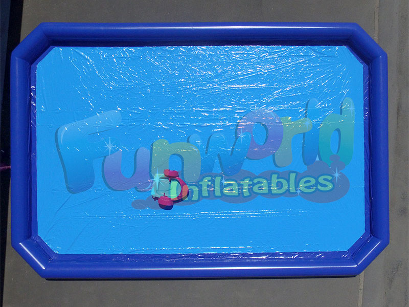La piscina inflable cuadrada le permitirá crear en el suelo, un estanque artificial (o piscina) para colocar Bubble Ride, botes para niños o rodillos de agua. La piscina inflable se fabrica principalmente en grandes tamaños, por lo que las piscinas inflables AquaZorb Zorbing serían convenientes para colocar varias atracciones acuáticas.