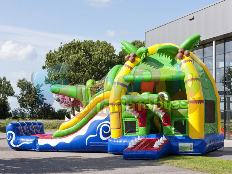 Además, Bouncer Multiplay Crocodile con tobogán está decorado en colores vivos y diseñado con el popular tema de cocodrilo. El castillo hinchable multiplay también está disponible en otros 15 temas diferentes.