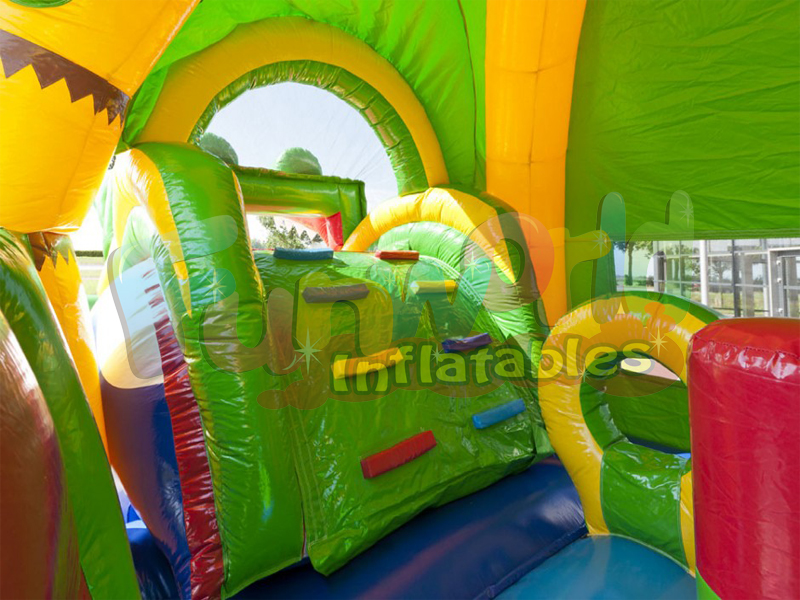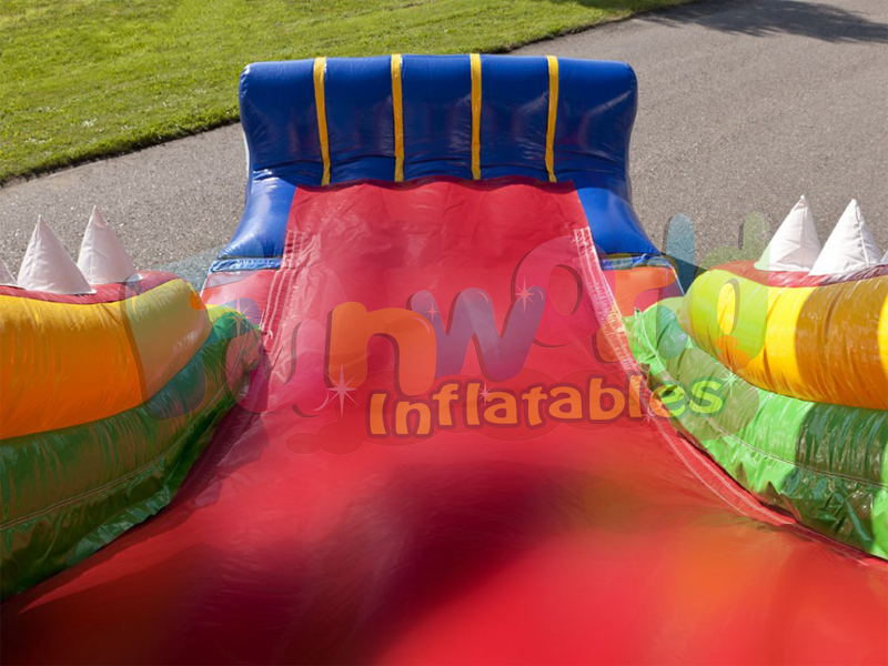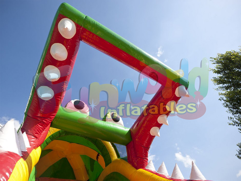 Este fabuloso inflable simplemente lo tiene todo salta a través de la boca Crocs en el área de rebote completo con obstáculos biff y bash. Sube por la escalera y deslízate hacia abajo desde una Boca de Cocodrilos Gigantes.