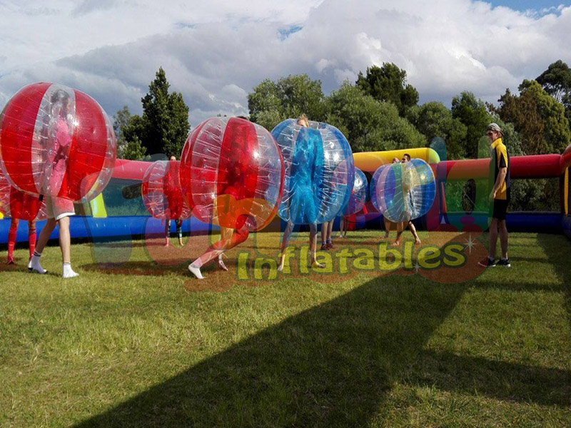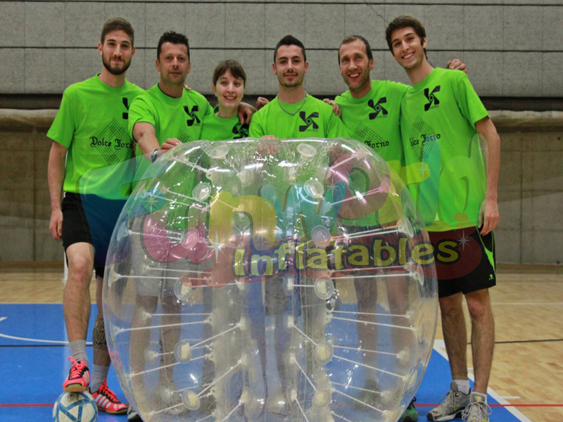 Bumper Bubble es la última moda en el campo de los deportes y la recreación. Bubble Soccer Balls China es un tipo de fútbol divertido, en el que los participantes usan una gran bola de plástico que sirve de cojín para empujar, hacer tope y rodar. Jugar al fútbol con un cuerpo Bubble Ball es una gran experiencia y es una solución ideal para eventos corporativos, formación de equipos y salidas grupales. El globo se infla rápidamente usando una bomba. ¡Entonces el jugador entra a la pelota y la diversión puede comenzar!