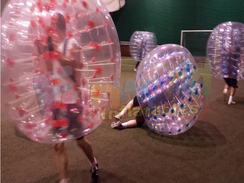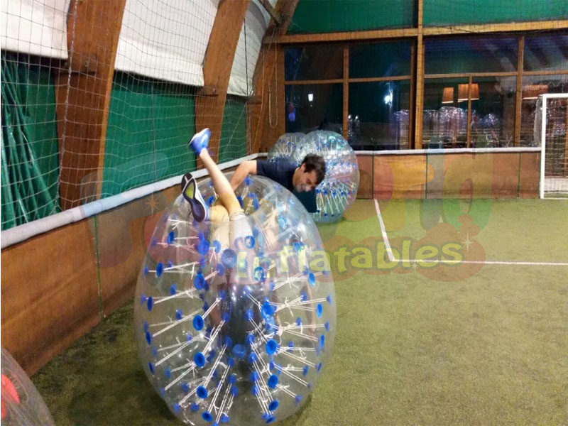 Jugador subiendo dentro de una burbuja para jugar al fútbol burbuja.