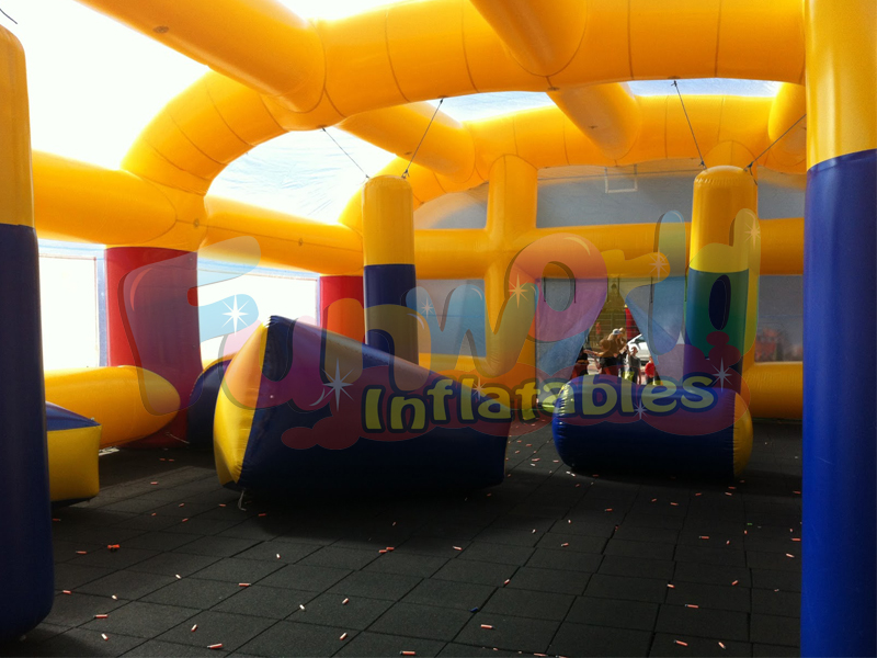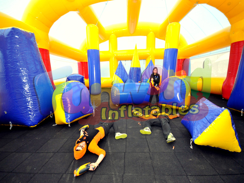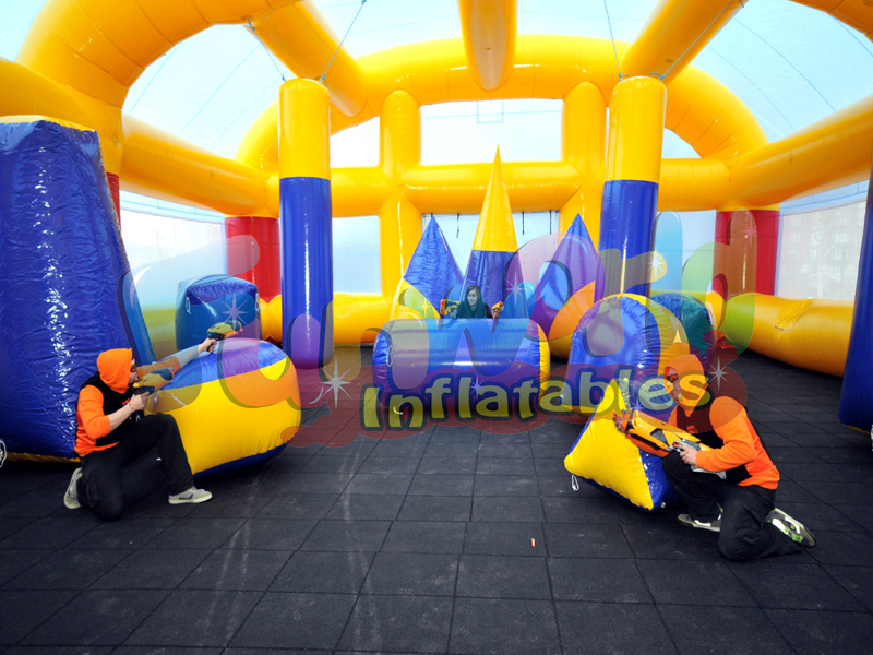 la arena inflable para la venta dentro de la cúpula era acelerada, frenética e impresionante. Los dardos rebotaron en las paredes, la gente saltó (y con frecuencia se estrelló) para cubrirse, y el señor sabe que tuvo que saltar uno o dos pasos para tapar la bandera. Sin embargo, y la tecnología ha cambiado mucho desde entonces. El domo inflable de tenis ayuda con los rangos más largos, en las tomas promocionales son claramente blasters Dart Tag, mientras que Capture the Flag y Elimination pueden ser el orden del día