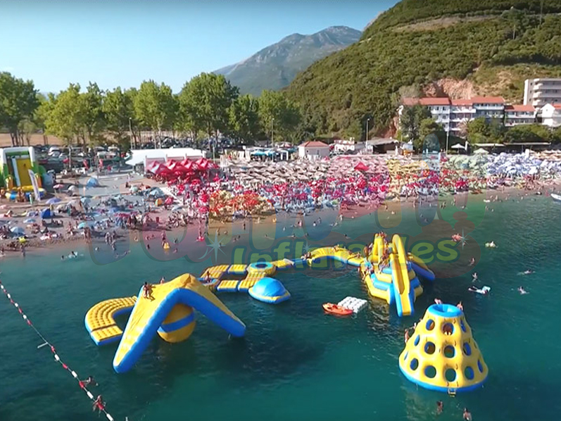 Los inflables para piscinas grandes brindan el espíritu de diversión y competencia amistosa a su piscina. El equipo acuático seguro e inflable de obstáculos de la piscina es simple y fácil de configurar. Hay seis partes que ensamblan este juego acuático: óvalo, salto de longitud, podio, equilibrio, base, salto de altura.
