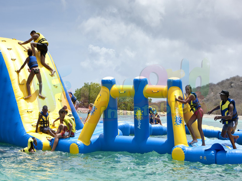 Hay un pequeño tipo de parque acuático flotante inflable cuyos componentes principales son, por lo general, toboganes de agua inflables y casetas inflables que son adecuadas para que jueguen los niños. Este tipo de parque acuático flotante para los operadores es muy conveniente y de baja inversión.
