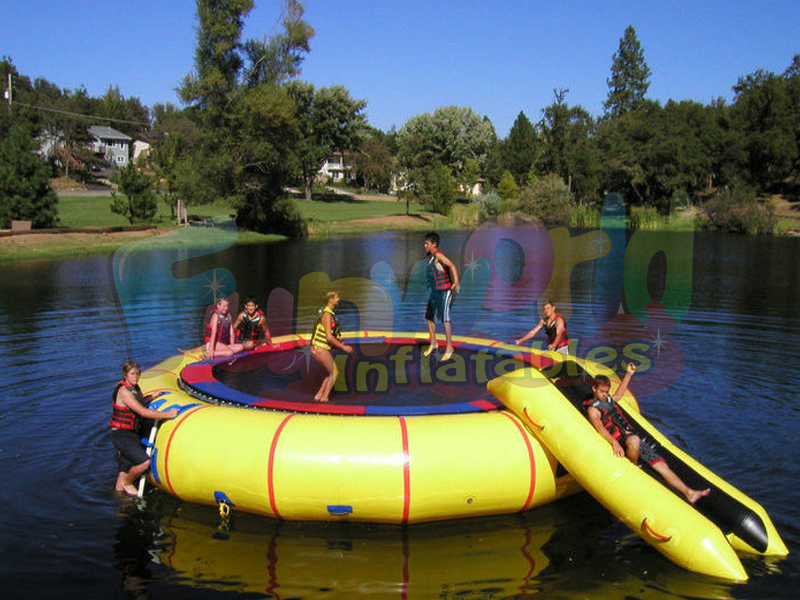 ¡Salpica con el trampolín de agua este verano! Los juguetes de piscina más únicos para el agua en el mercado hoy en día. Diseñado para la seguridad de alquileres para fiestas, el tubo se conecta directamente a la superficie del salto con resortes, eliminando el marco de acero pesado que se encuentra en los trampolines tradicionales.