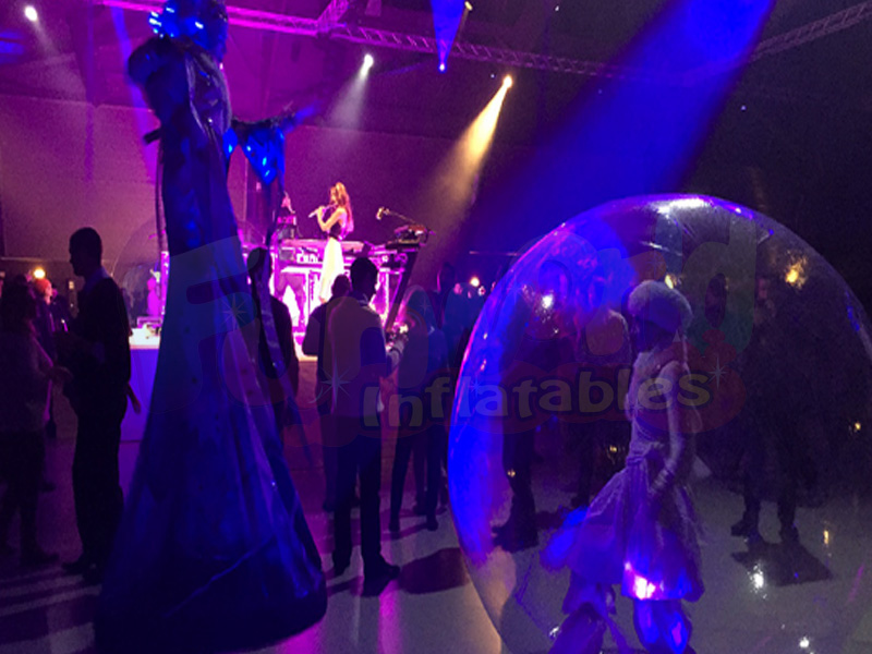 Traiga a sus eventos un toque original y único con nuestros artistas en carpa de burbujas transparentes para la venta en el suelo o el agua. Nuestras burbujas de ambulación están en armonía con los temas y colores de su evento con la posibilidad de realizar espectáculos en trajes de luz (LED) o trajes adaptados a su tema. Nuestras pinturas artísticas se adaptan a la bienvenida de sus invitados, para que sucedan durante la noche o para el lanzamiento de su fiesta de baile.