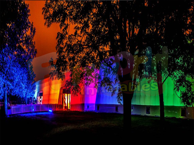 Las grandes tiendas de campaña baratas tienen una sola puerta que se abre hacia el frente y ofrece aproximadamente 90 m2 de espacio interior utilizable. la sala de refugio inflable de la oficina de la cápsula es lo suficientemente ligera para ser instalada por dos tripulantes en el interior o al aire libre con fijación. Hay una gama de extras opcionales disponibles, como puertas, pisos y truss AV. La carpa de fiesta inflable de iluminación está disponible en blanco liso por dentro y por fuera, y blanco con borde plateado.