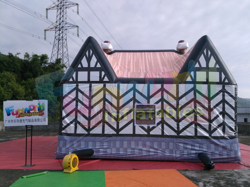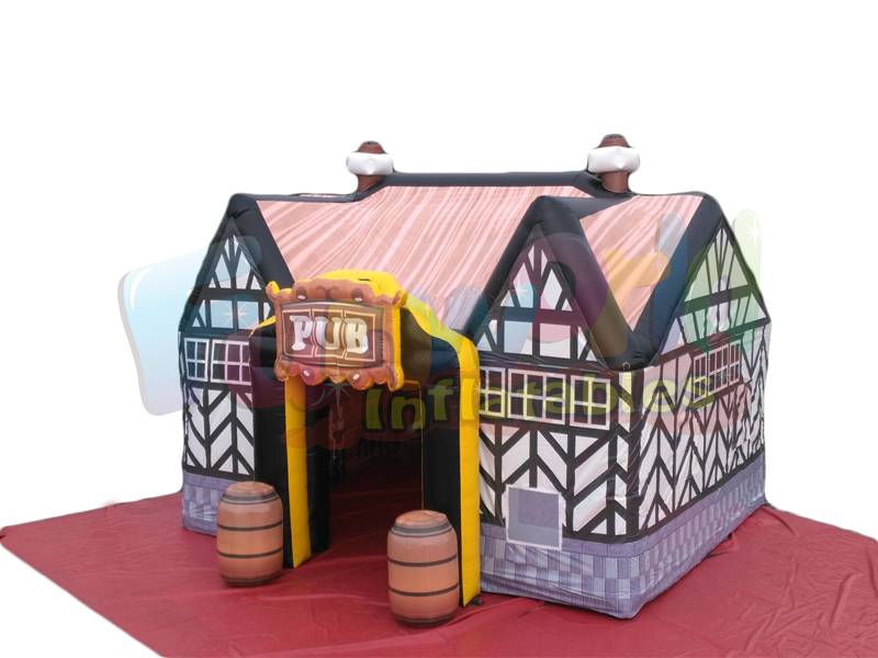 Nuestro pub inflable tiene 26 'de largo, 16' de ancho y 16 'de alto y requiere un espacio abierto de 30' x 20 'para un correcto funcionamiento. Tiene dos entradas, una en la parte delantera y otra en la trasera. El inflable pub irlandés tiene capacidad para aproximadamente 70 personas de pie o 36 sentados. Nuestro pub más pequeño, 'The Saloon', mide 16 'de largo por 15' de ancho y 16 'de alto y requiere un área de 20' x 20 'para instalar también puertas en la parte delantera y trasera. Suministramos luces que cuelgan en el techo y tenemos otros artículos disponibles como extras. bar soplado para una fiesta o reunión familiar sufriría